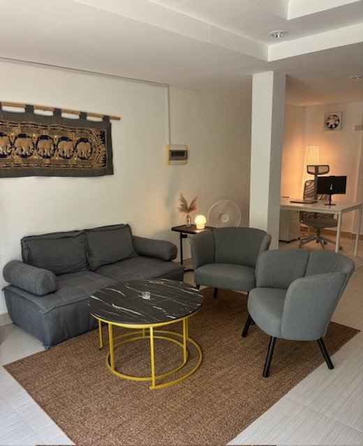 Well-planned apartment of 60 square meters, located on the ground floor of a large villa with its own entrance. It has been completely renovated with a fully equipped kitchen from IKEA and a dining area for 6 people.